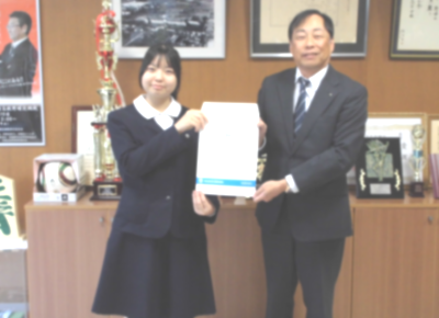 2025年10月24日 08時07分 [安積黎明高校]10月21日(火)午後、保土谷化学工業株式会社様からご寄付をいただきました。同社は郡山市に工場を構え、市内の高校部活動等にご寄付をされており、この度、全日本合唱コンクール全国大会に出場するコーラス部の活動もご支援していただけることになりました。贈呈式では部長が工場長様から目録をお受けし、感謝の気持ちと大会への抱負を伝えました。保土谷化学工業株式会社様のご支援に心から感謝申し上げます。